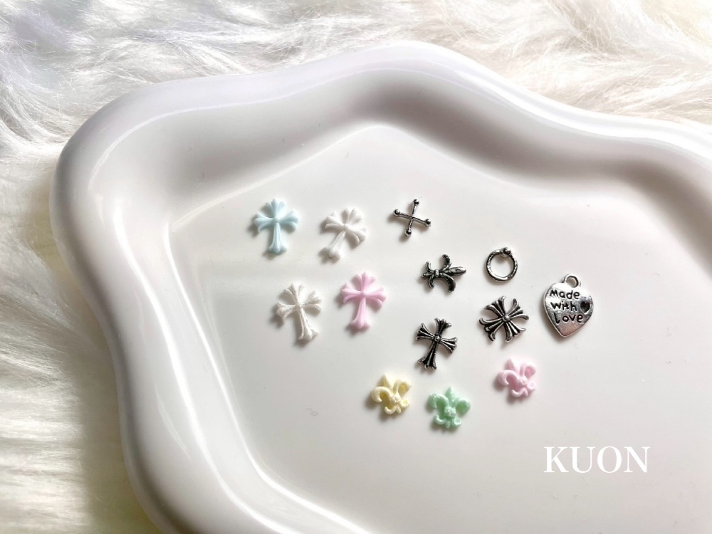 パーツ多数ご準備しております。オプションで追加して頂く事も可能です。薔薇、クロム、リボン、ハート、蝶々など